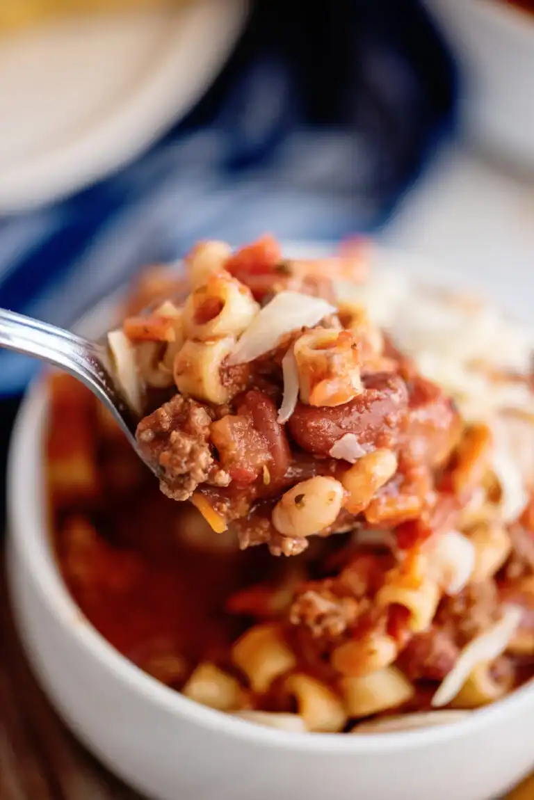 Inspired by Olive Garden’s Pasta Fagioli soup, my slow cooker Pasta Fagioli recipe includes a deliciously hearty and flavorful combination of ground beef, beans, tomatoes and tomato sauce, Italian seasoning, and pasta.