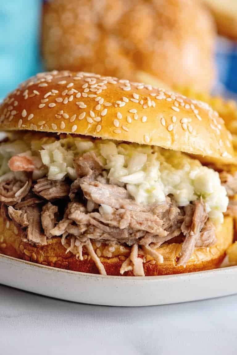 This easy crock pot pulled pork recipe is made with surprising ingredients that combine to deliver juicy flavorful meat for pulled pork sandwiches. This recipe is guaranteed to help you connect to Southern cookin’ with every bite.