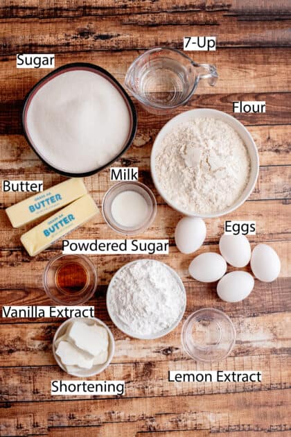 So while this is a traditional pound cake recipe, it includes a secret ingredient… 7-Up lemon-lime soda. The carbonated soda acts as a leavening agent and replaces baking soda (yep, really). It helps make the cake rise and gives the cake a lemon-lime flavor. This 7-Up pound cake tastes like a classic lemon pound cake. Plus, we pair it with the perfectly complementary sweet lemon glaze.