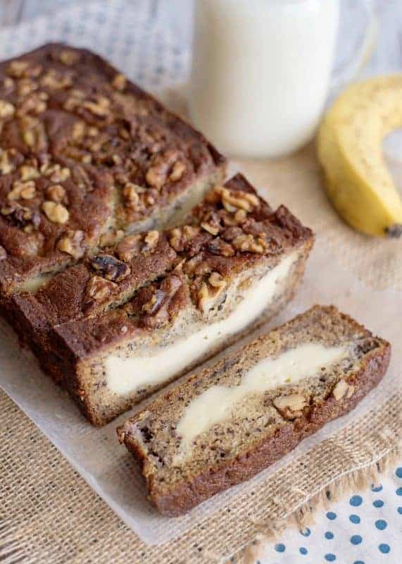 Cream cheese banana bread is the new banana bread recipe on the block. It includes a delicious cream cheese filling, which perfectly complements the moist banana bread. Go ahead, indulge today!