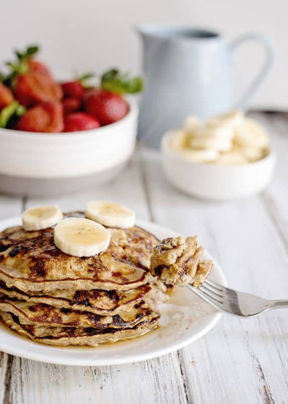 All you need is 2-4 ingredients to make my warm and delicious healthy banana pancakes. They’re a delectable cross between traditional pancakes and a thick fluffy banana crepe.