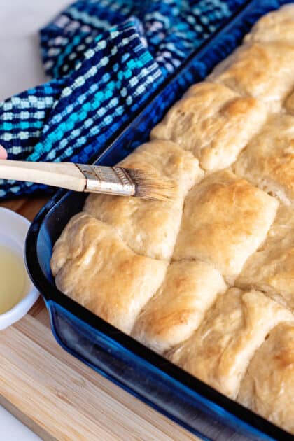 No, you don’t have to bake these yeast rolls immediately. After shaping them and placing them in the baking dish, what you can do is cover the baking dish with plastic wrap and let it rest in the fridge for up to 24 hours. Then let them sit at room temperature for 30 minutes before baking as instructed.
