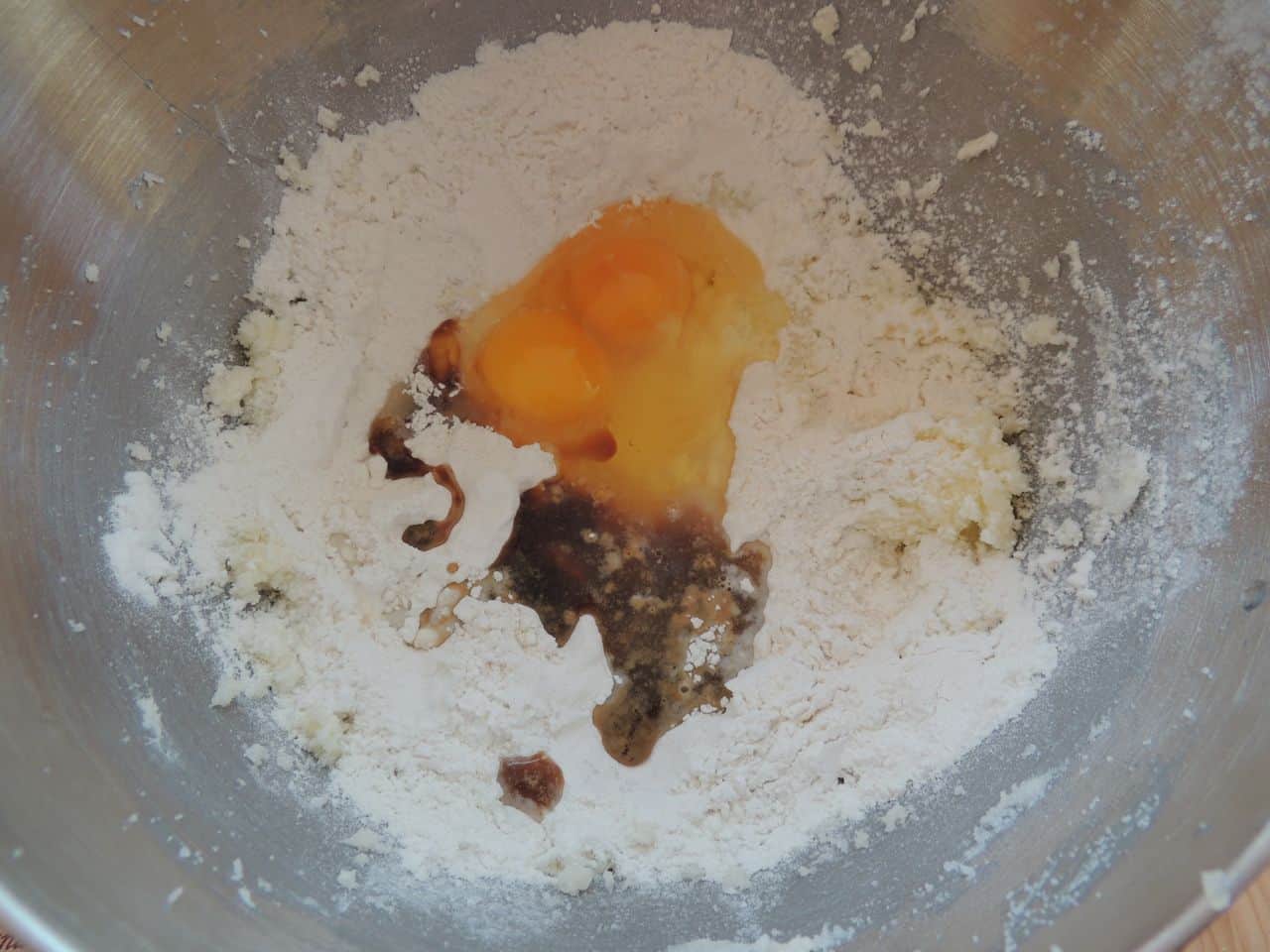 Notice that there is no “gradual” here, just dump it all in there. I’m sure there are many virtues to “gradual” but I’d rather spend my spare time swinging with my kids than babying an egg that wants to be added slowly after every 2 ounces of flour…