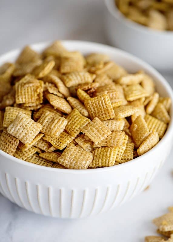This is SO good! I made it as the recipe states for a sweet treat, and then also made a “breakfast” version with half the butter and sugar, Cheerios in place of half the Chex, plus some dried fruit. It has the loveliest crunch to it! Very addictive!