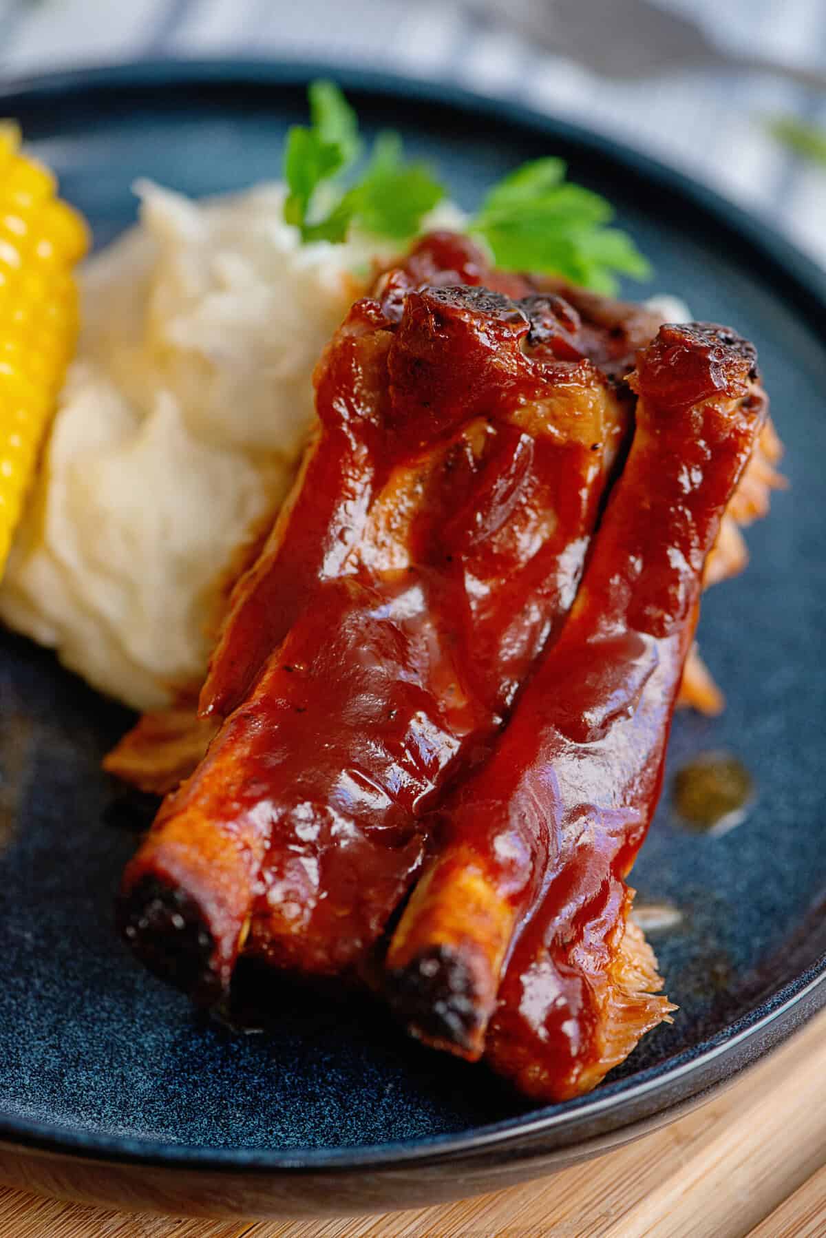 Store leftover ribs in an airtight container in the fridge for up to 3 days. To reheat, place them in a 300°F oven or air fryer until warmed through. Adding a little extra BBQ sauce helps keep them moist.