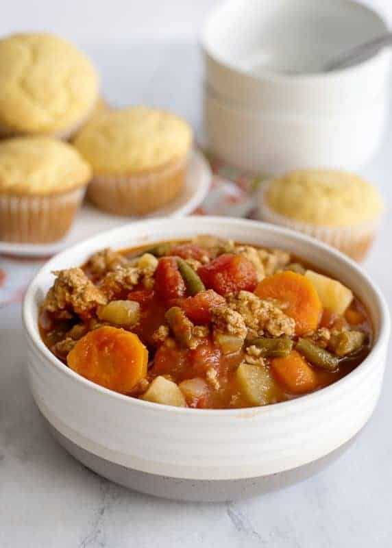 Overloaded with vegetables and with a juicy tomato base, you won’t believe the secret ingredient in this tender and rich ground beef stew recipe that adds a punch a flavor.