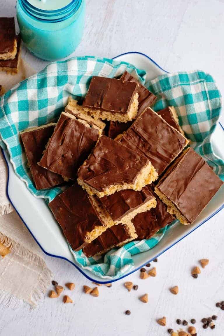 These chewy, no-bake Scotcharoos deliver big peanut butter flavor, a crackly chocolate-butterscotch topping, and that beloved nostalgic feeling!