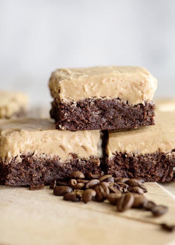 My coffee brownies include homemade rich fudge brownies with creamy coffee frosting to make the perfect treat for both chocolate and coffee lovers.