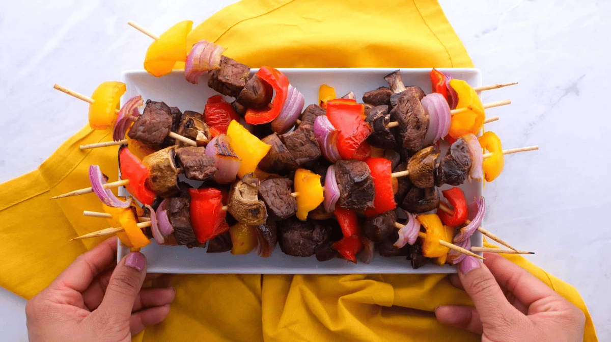 I made steak kabobs in the oven and rice pilaf this Valentine’s Day and my family loved every bite. The beef kabobs are so easy to make with any veggies you have on hand and the marinade ensures the meat is tenderized to perfection. Rice pilaf is the perfect side dish.