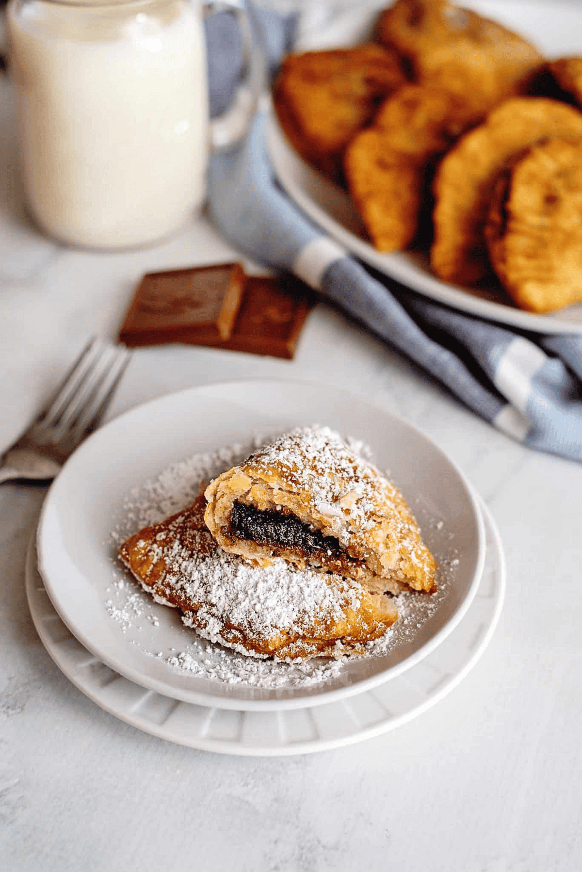 Chocolate fried pies are little hand pies with chocolate filling, fried until the crust is golden and crisp. They remind me of old-style gas station pies, only better because they are homemade. Wrap them up individually and you have built-in Valentine’s treats to share.