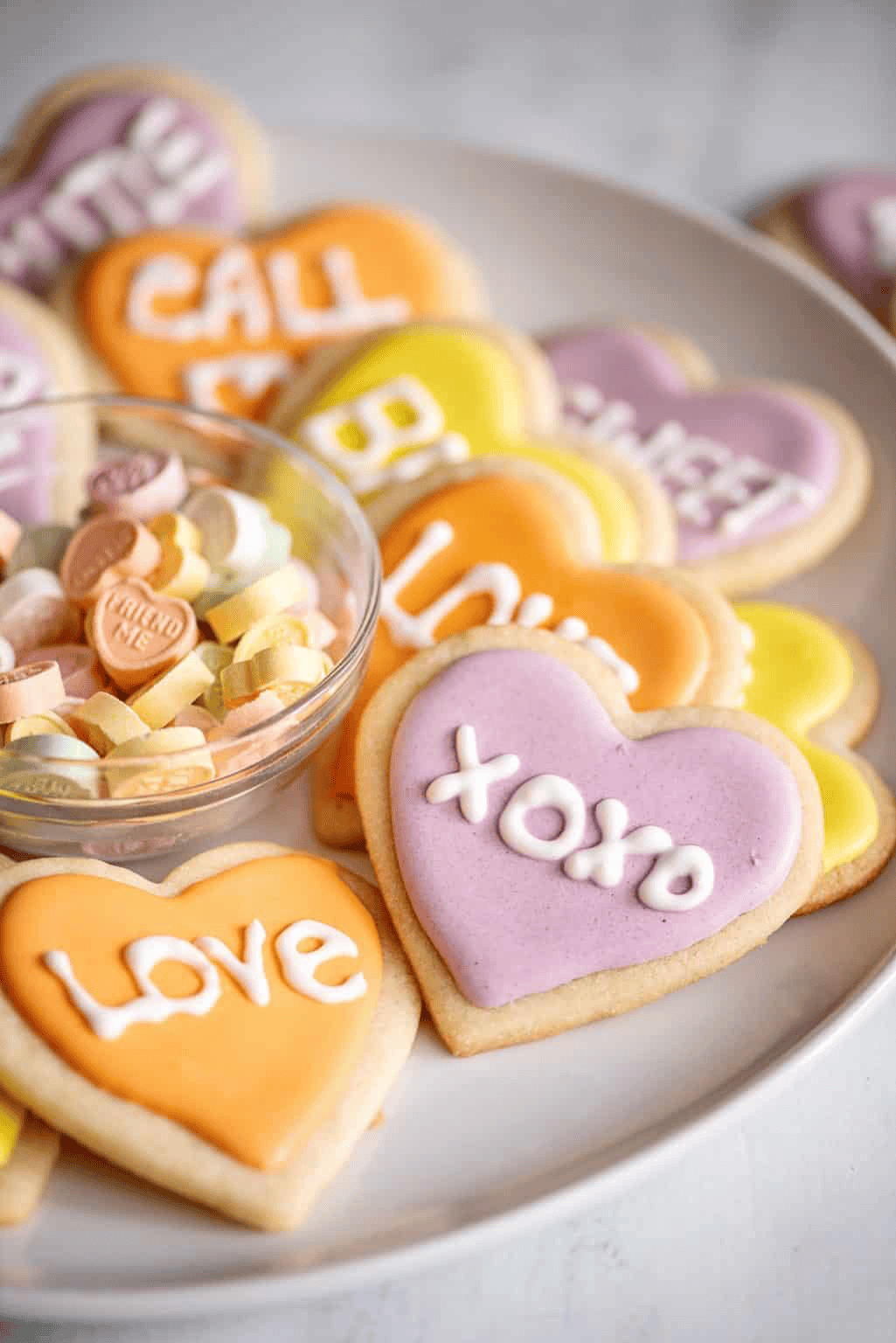These heart-shaped sugar cookies are soft, buttery sugar cookies topped with glossy, colorful royal icing that’s so fun to decorate. They’re the perfect Valentine’s Day baking project to cut, frost, and sprinkle for date night, classroom parties, or sweet little gifts!