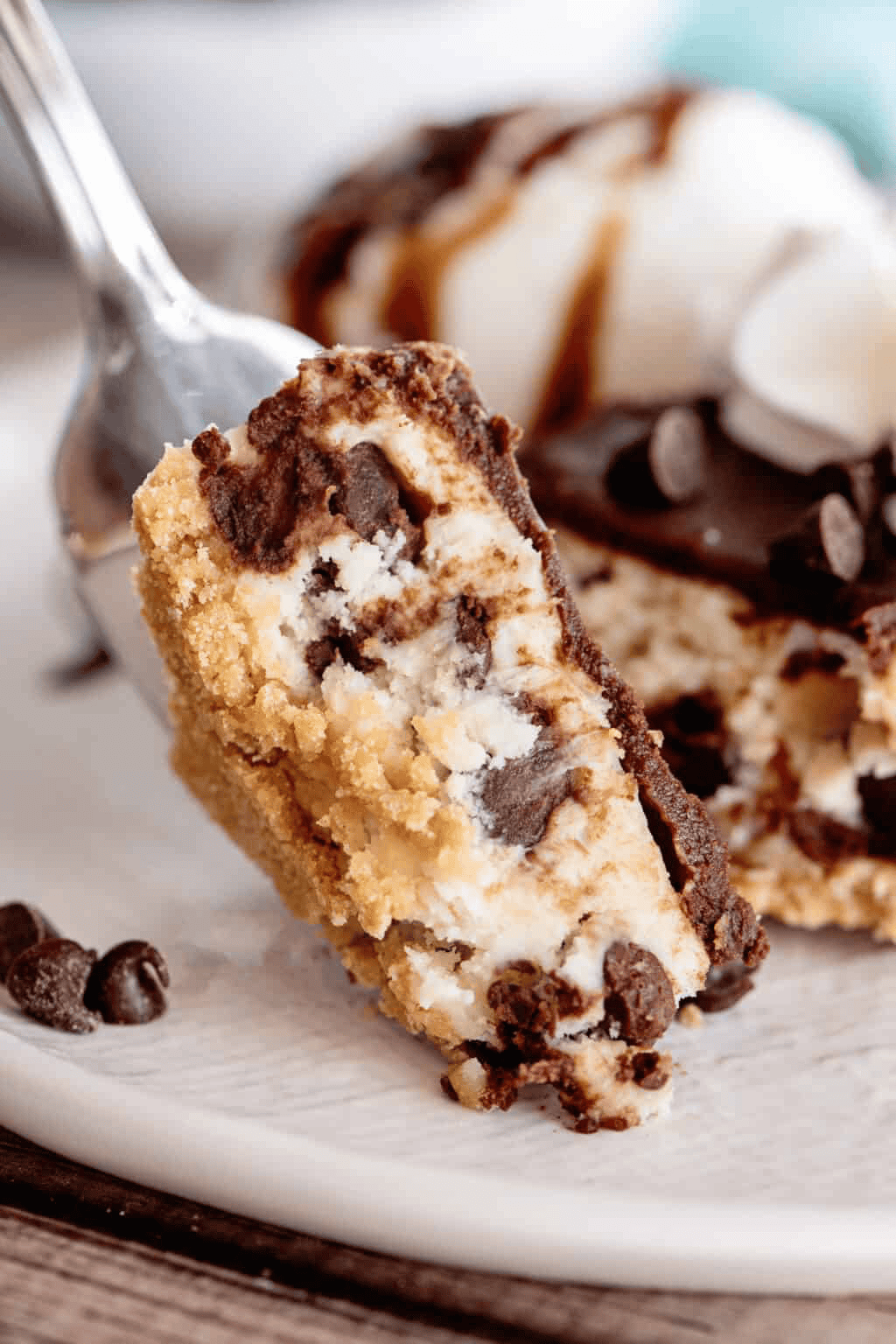 Chocolate chip cheesecake has chocolate chips scattered throughout the creamy filling, so you get a little bit of chocolate in every bite. It is a fun twist on plain cheesecake and perfect if your Valentine loves both cheesecake and chocolate.