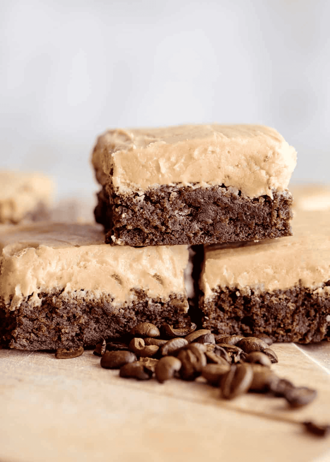 Coffee brownies are rich, fudgy brownies with a little coffee in the batter to deepen the chocolate flavor. They are not “coffee flavored” so much as extra chocolatey, which makes them perfect for grown-up Valentine’s dessert plates. Cut them into little squares and serve with ice cream or a cup of coffee!