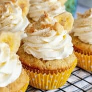 Pipe or spread onto cooled, filled cupcakes. Garnish with banana slices, Nilla wafers, or wafer crumbs for that pie feel.