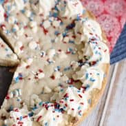 We've always loved "big cookies", as my family calls them. They're just extra special, extra delicious, and really bring the party to an event. Today I'm sharing a fun recipe with you for a Patriotic version of a white chocolate chip big cookie that is so pretty you almost don't want to cut into it - almost.